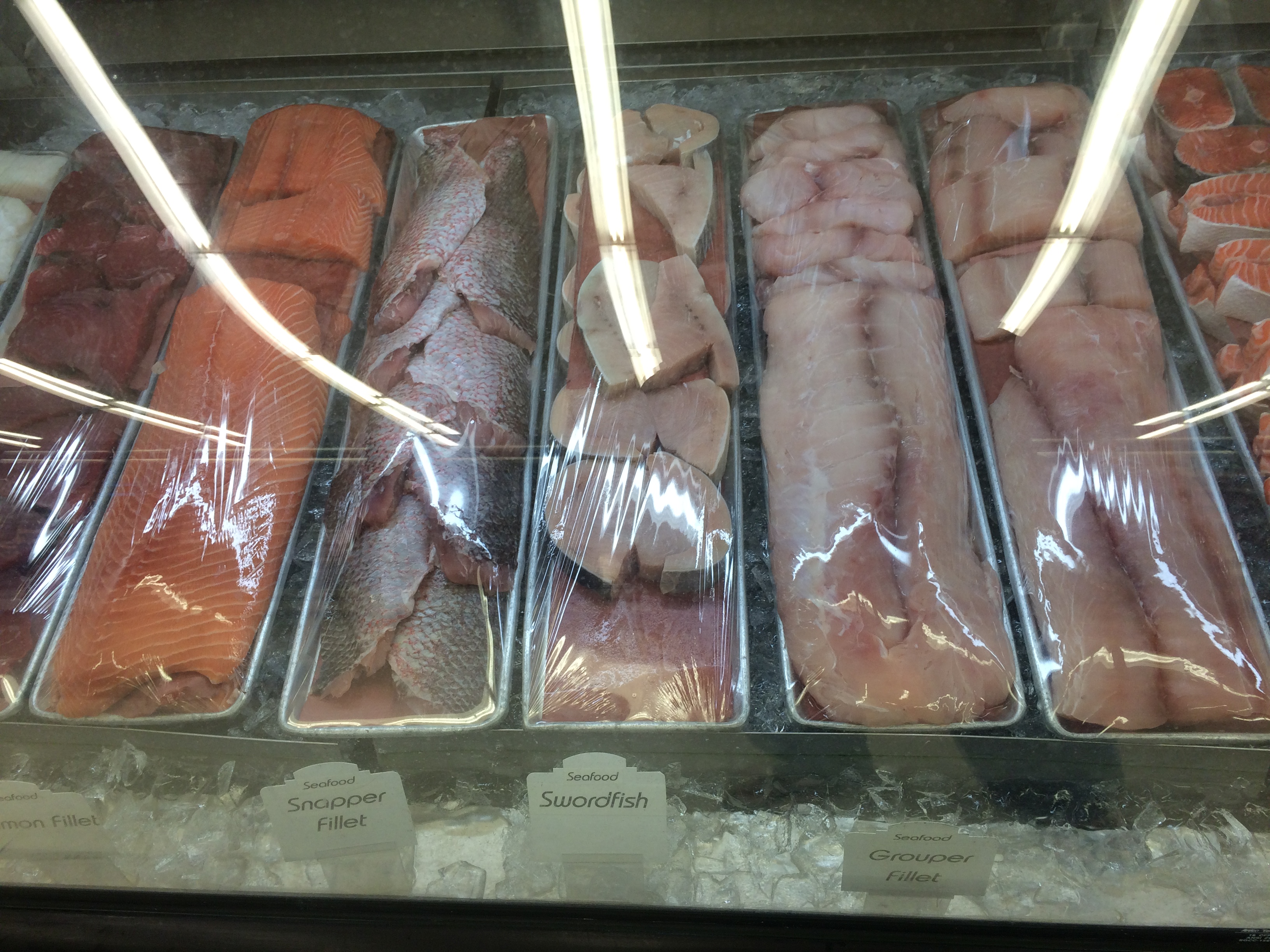 Black Angus, NY Strip, fillet mignon, live lobster, fresh dolphin, fresh snapper, baby-back ribs and